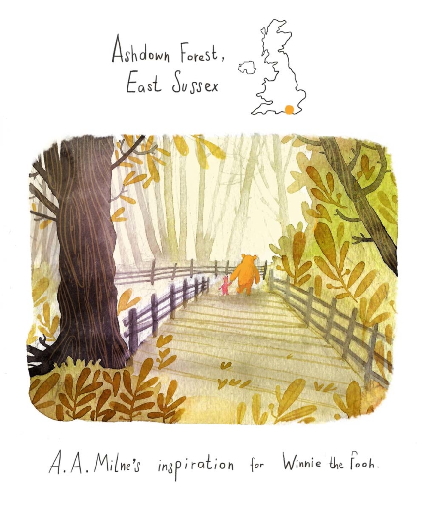 Other notable places include the bare hilltop of Gills Lap, which inspired Galleon’s Leap in the Pooh tales, and the footbridge across the River Medway in Posingford Wood, which is where Poohsticks was first played. A visit to Ashdown Forest is like stepping into the pages of a storybook, and it’s easy to imagine a small golden bear in a red top walking alongside you when you visit.